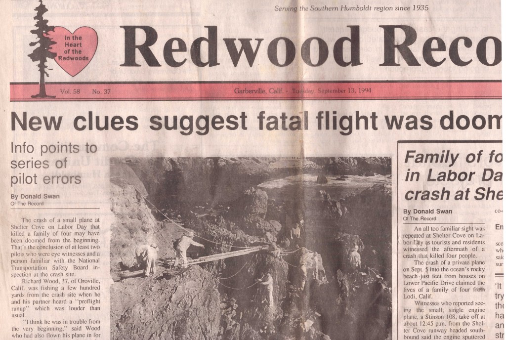 It may have been a good time for a young reporter trying to make a name for herself to become an editor, but not for me. For our small coverage area, there was a surfeit of hard news; plane crashes, missing persons, (the aforementioned) Tree Sitting civil disobedience, and a Coast Guard helicopter crashing in Shelter Cove, killing all aboard. Stories about budget shortages, no money to fix roads or provide police protection in outlying areas, and so forth were plentiful. The annual Redwood Run (mostly Harleys), the popular Reggae on the River, drew people from several states and countries.